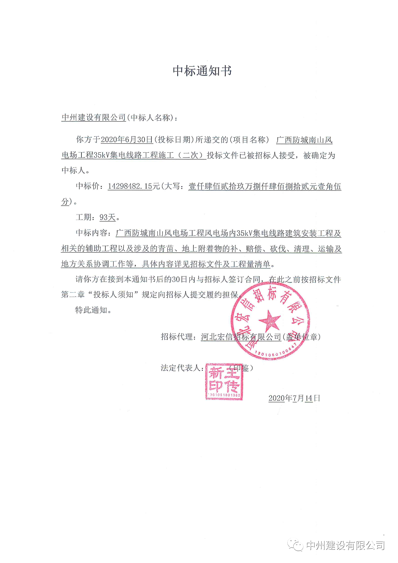 三、廣西防城南山風(fēng)電場工程35kV集電線路工程,中標(biāo)金額14298482.15元。